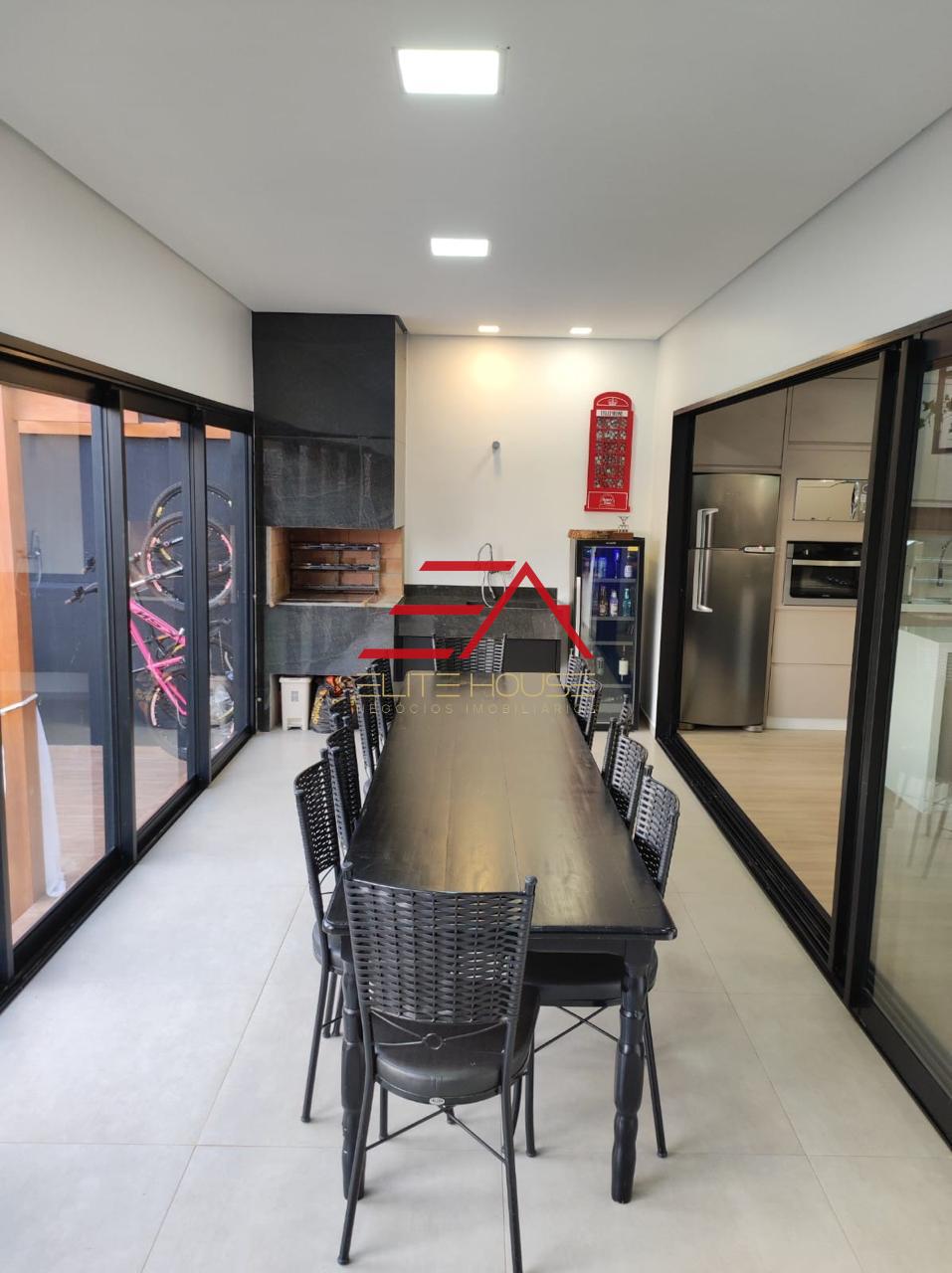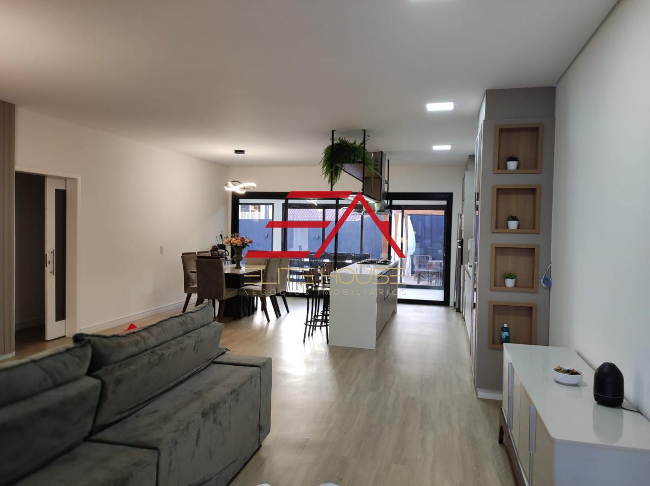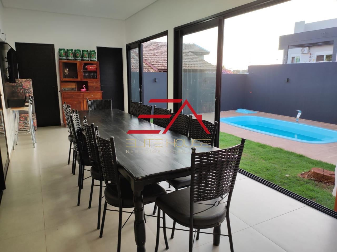 01 Suíte + 02 Quartos 01 Banheiro Social Sala de TV Sala de Jantar e Cozinha integradas, com móveis planejados Área Gourmet com banheiro Piscina Lavanderia Pergolado em madeira Depósito Garagem paralela coberta para 2 veículos Além disso, o imóvel inclui móveis planejados e eletrodomésticos, esquadrias em alumínio, piso vinílico e porcelanato na área gourmet e garagem, portão basculante eletrônico e sistema de alarme para maior segurança.