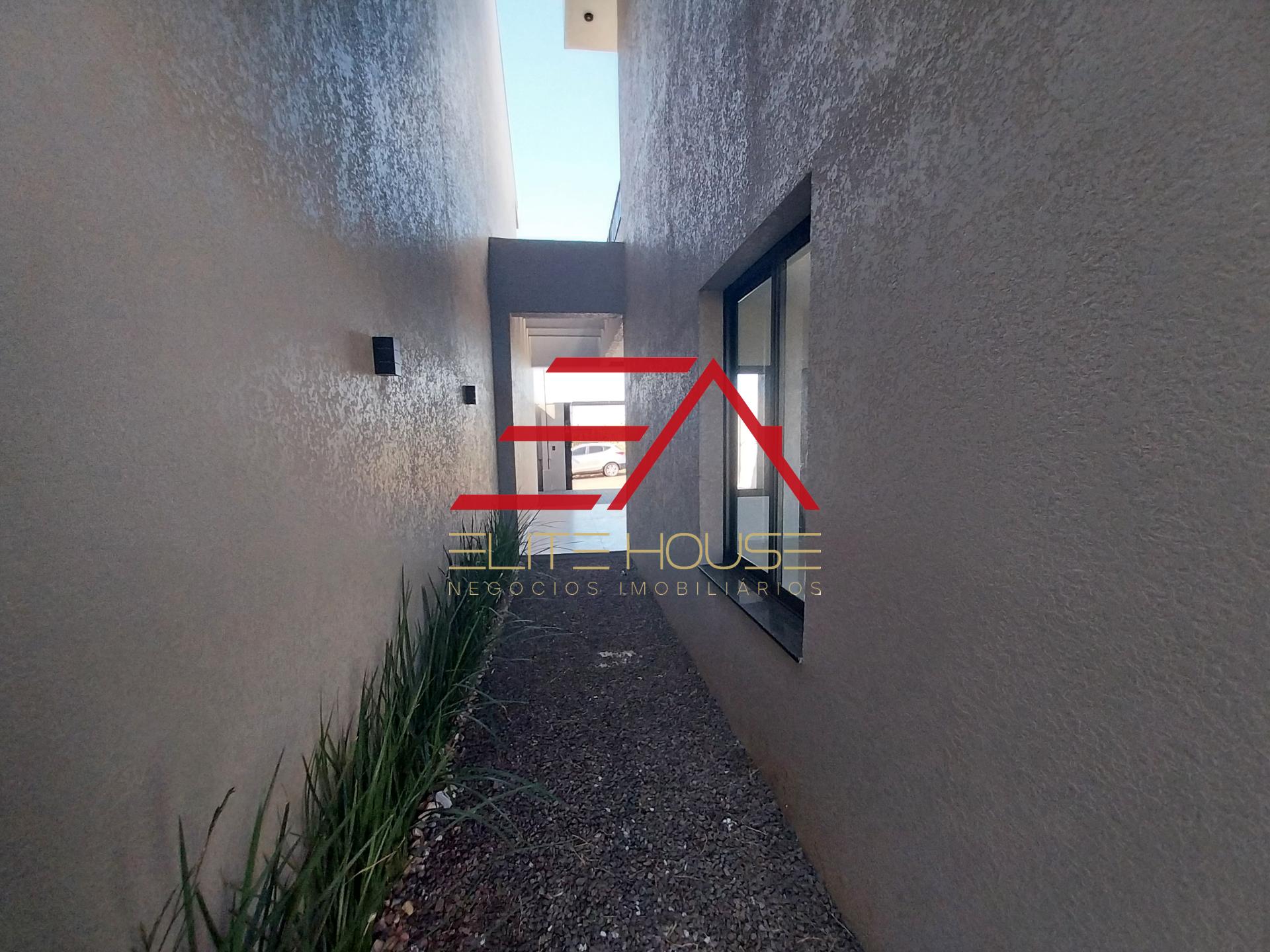 - 01 Suíte com closet e sacada; - 02 Quartos; - Sala de estar; - Cozinha; - Área gourmet com churrasqueira; - Banheiro social; - Lavabo; - Área de serviço; - Passagem lateral; - Ampla sobra de terreno; - Garagem paralela.